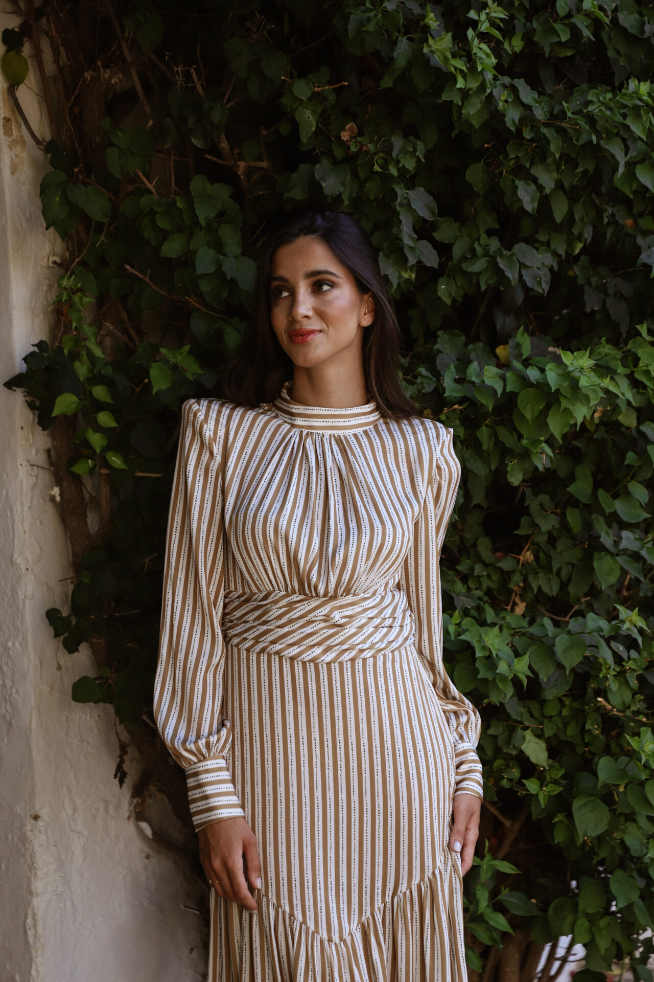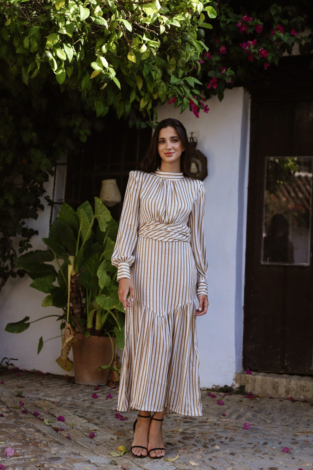 Es un vestido muy elegante y estiloso, perfecto para los eventos de otoño invierno.